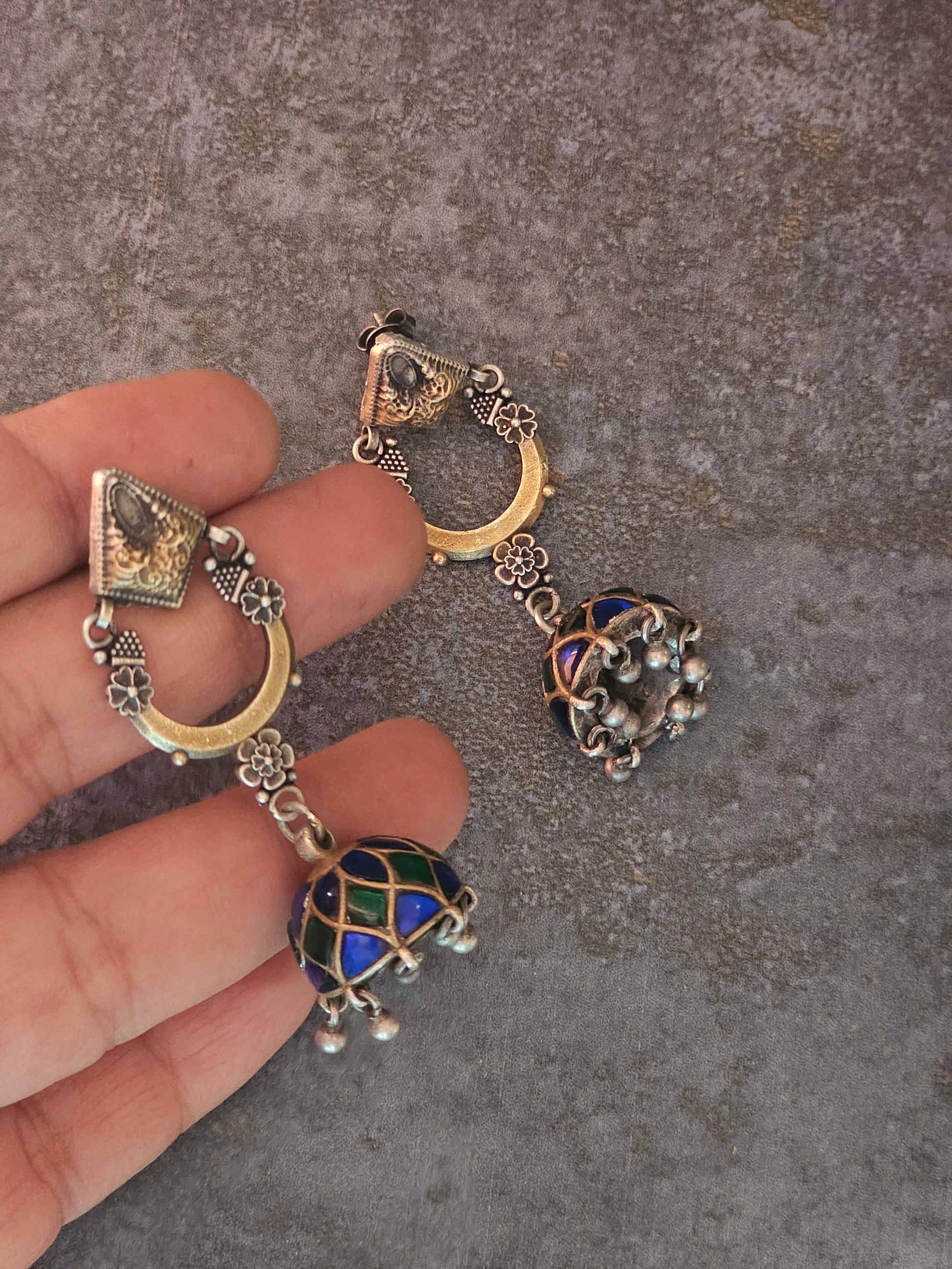 Kundan two tone silver fusion jhumkas