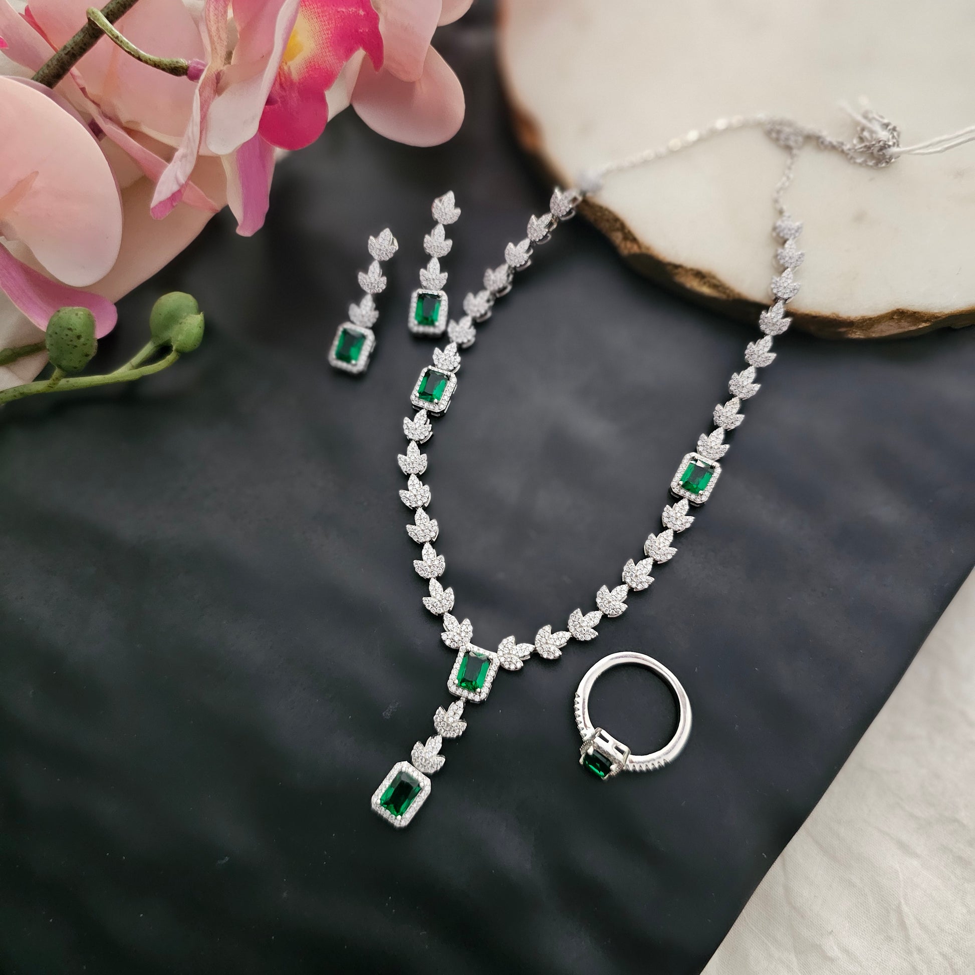 This silver 92.5 cubic zirconia necklace set is the perfect accessory for any evening event. With its stunning design, it will elevate your look and help you make a statement at any awards night or dinner gathering. Don't miss your chance to rock this exquisite set!
