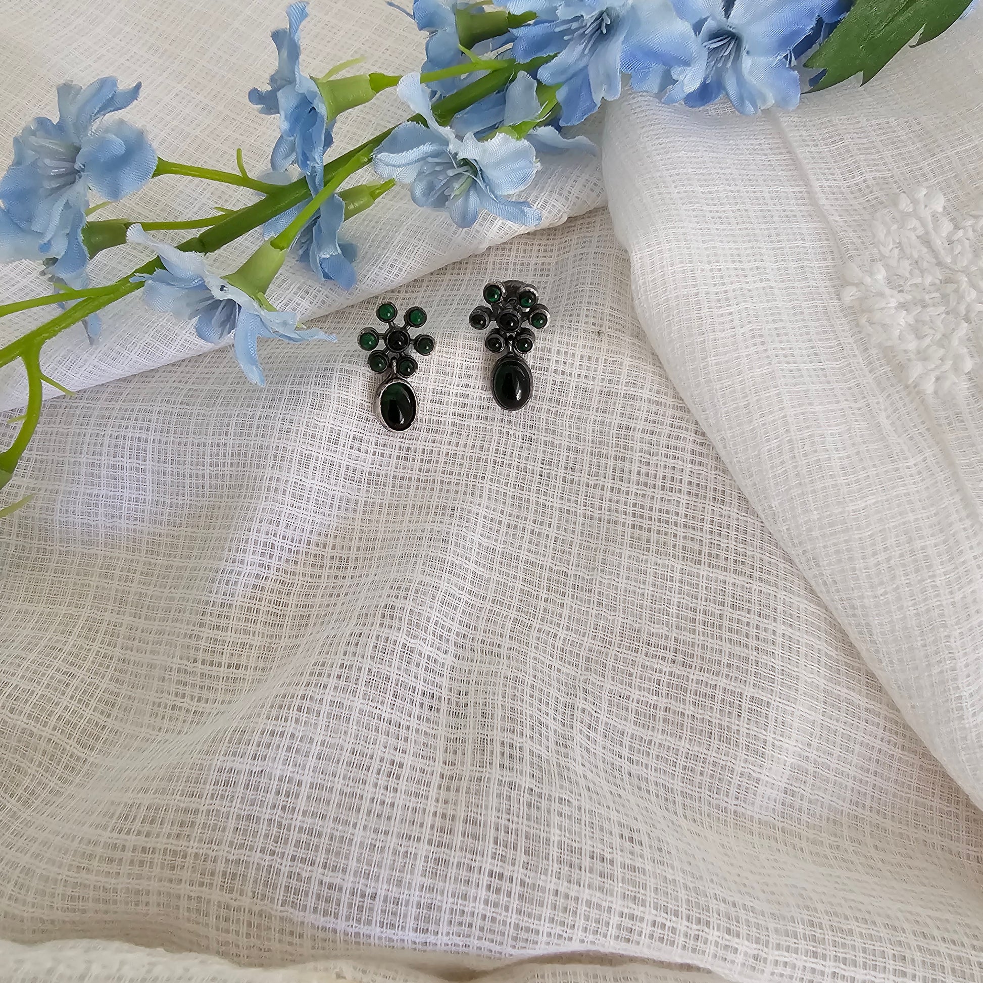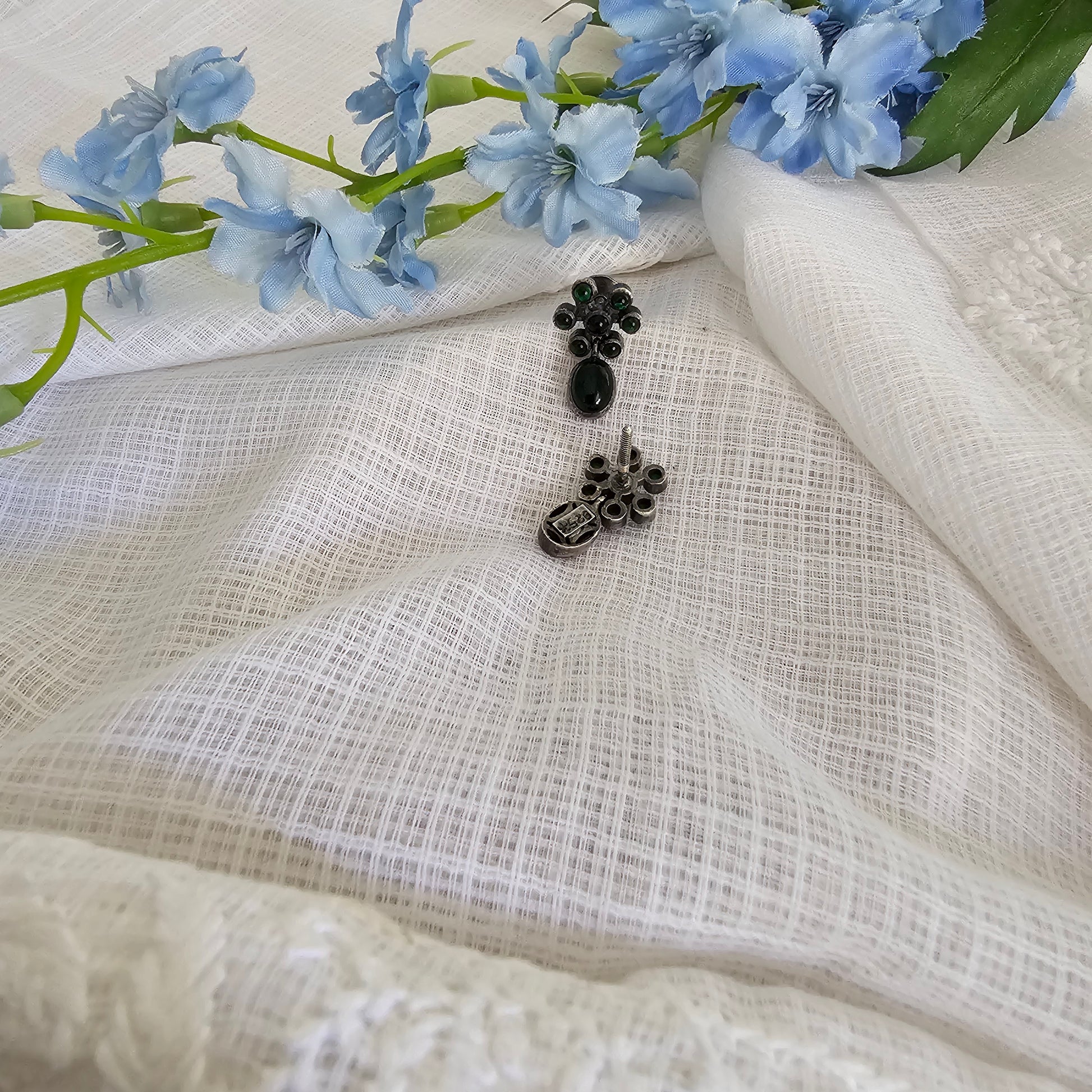 Silver 92.5 green kemp stud