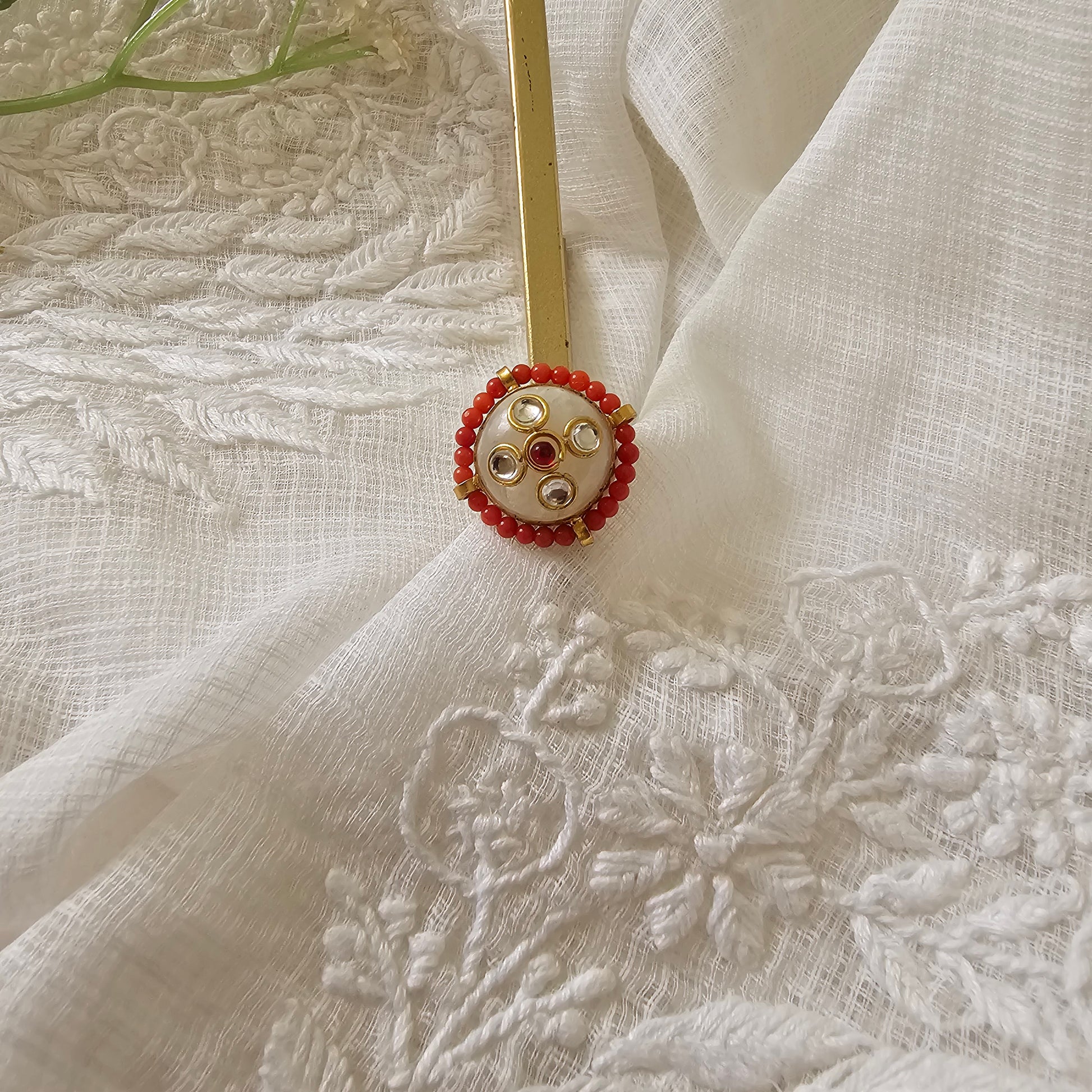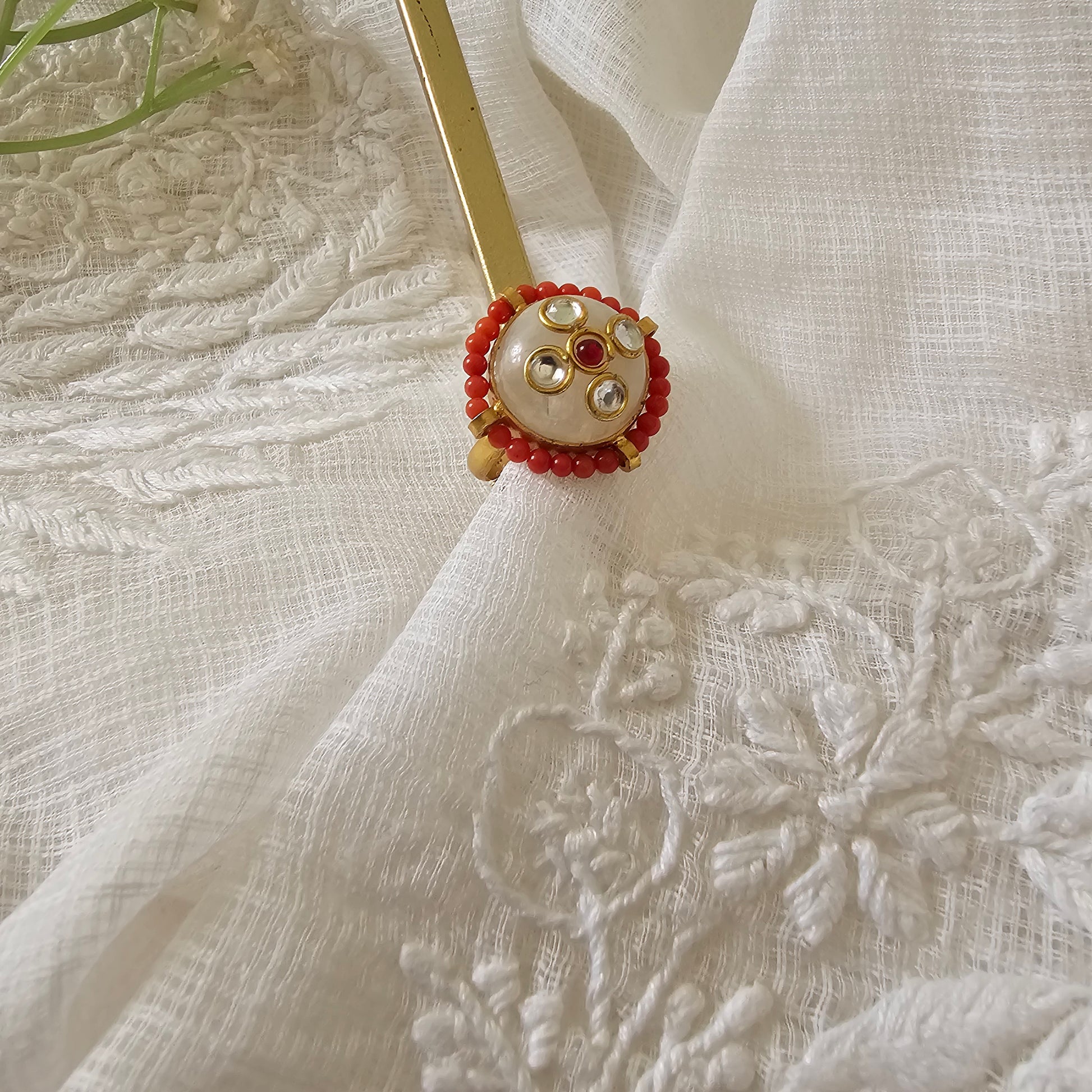 silver 92.5 kundan gold polish moonstone with coral ring.