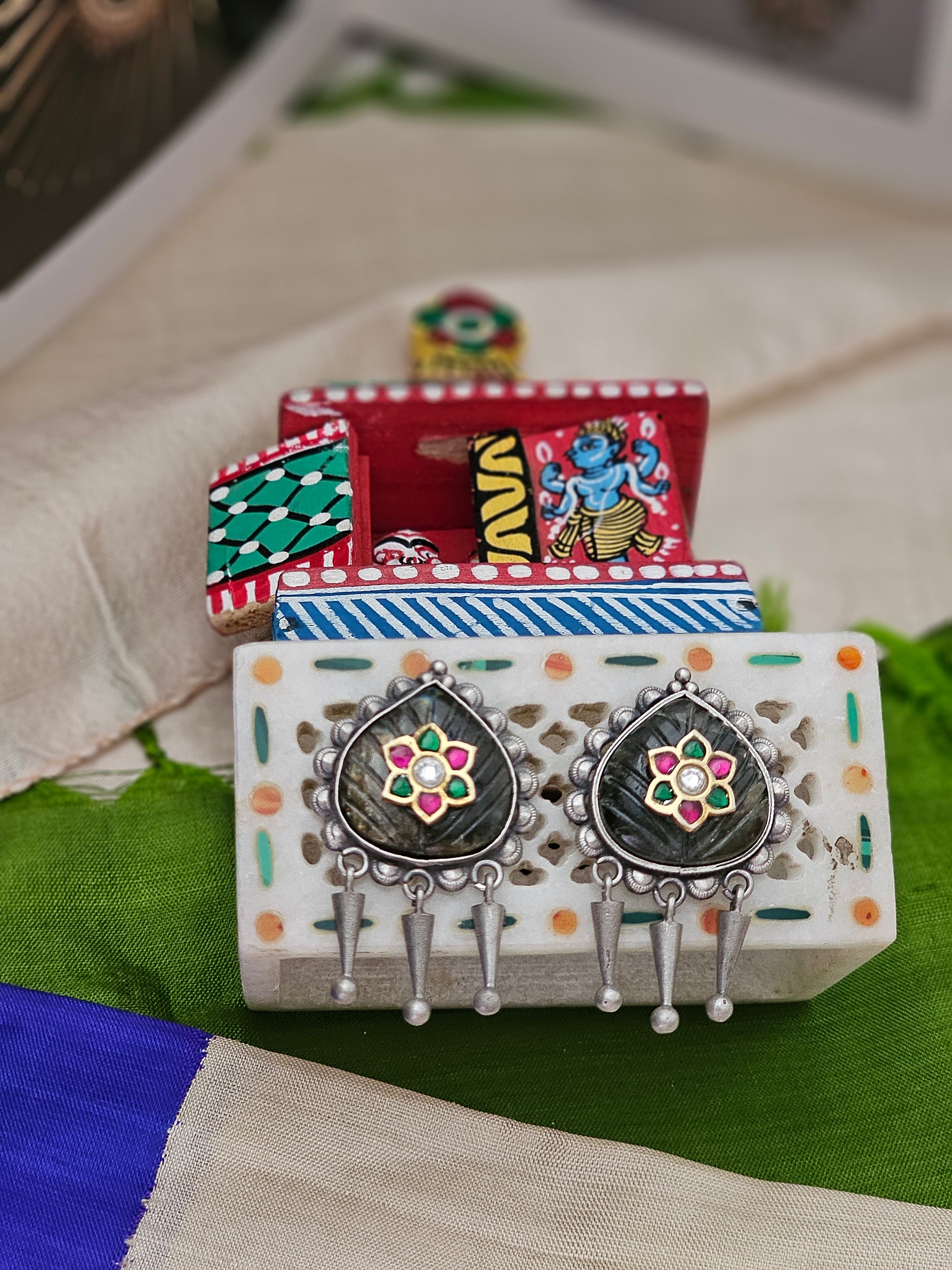 Silver 92.5 kundan gold polish two tone labrodrite inlay work studs.