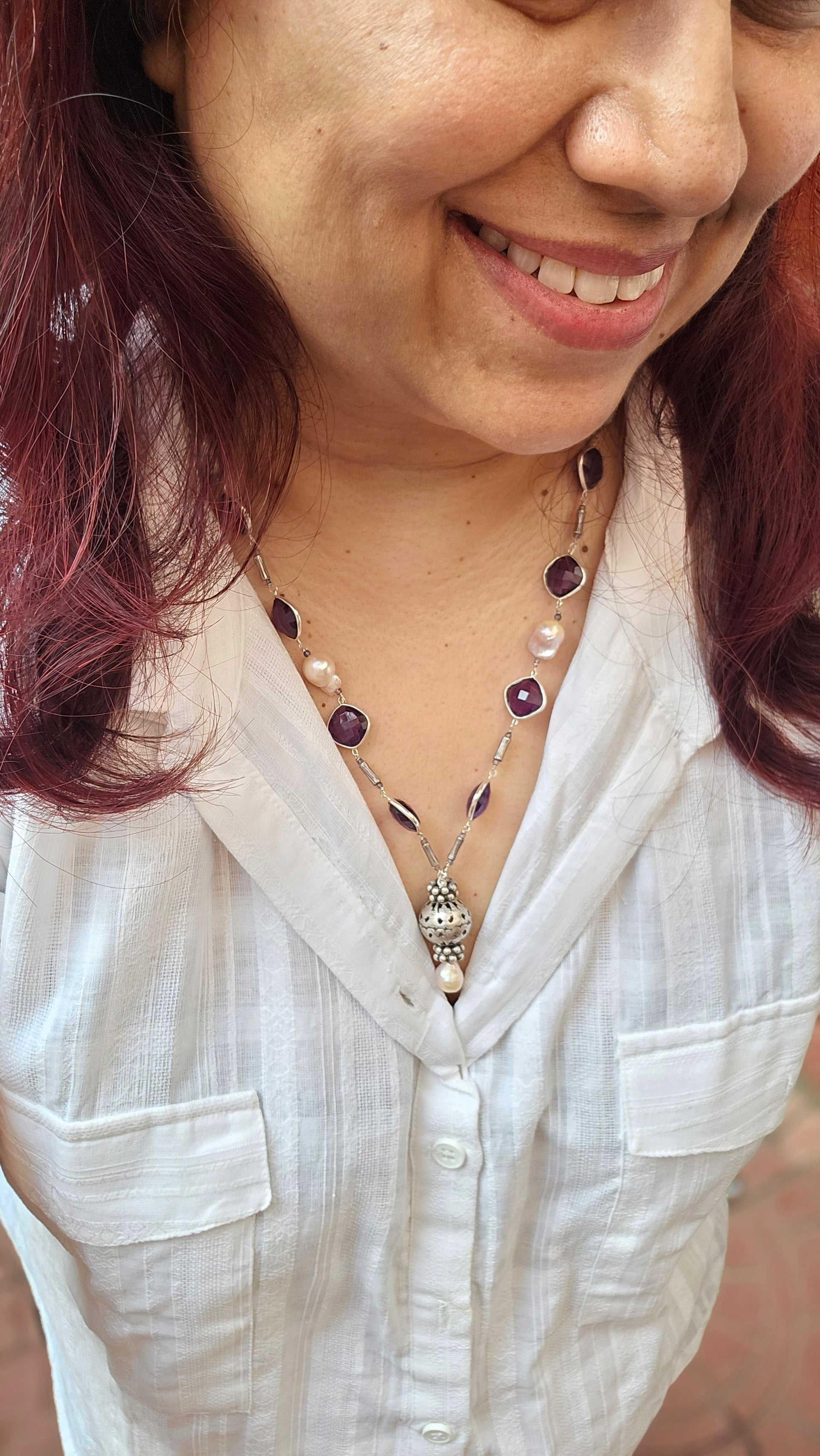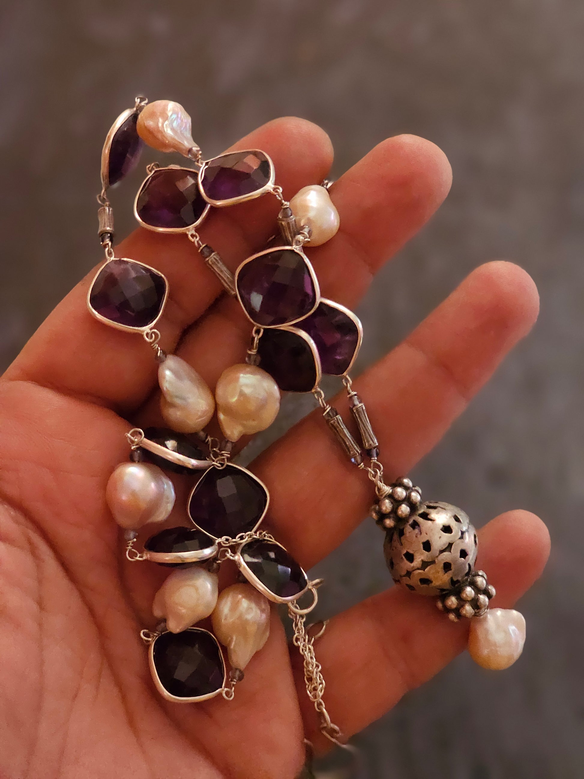 Silver Amethyst, Baroque pearls necklace